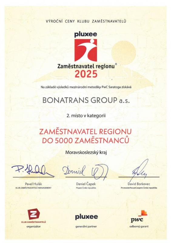 BONATRANS has taken 2nd place in the Employer of the Year Award of the Moravia-Silesia Region 2025.