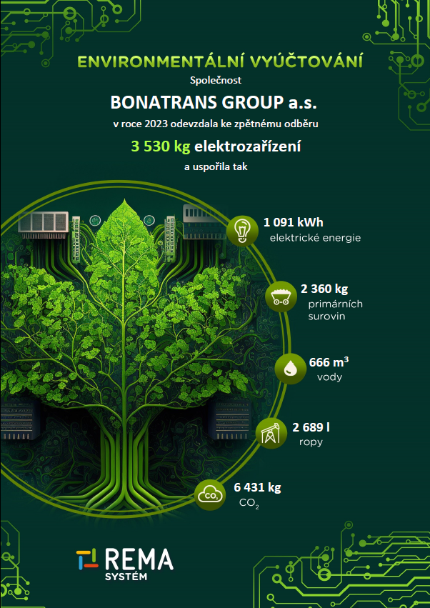 BONATRANS handed over 3,530 kg of waste electrical equipment for take-back in 2023, thus ensuring that this waste does not end up in landfills or incinerated in incinerators. Through recycling, we have reduced the environmental impact of e-waste and generated savings, which we can illustrate with concrete examples: